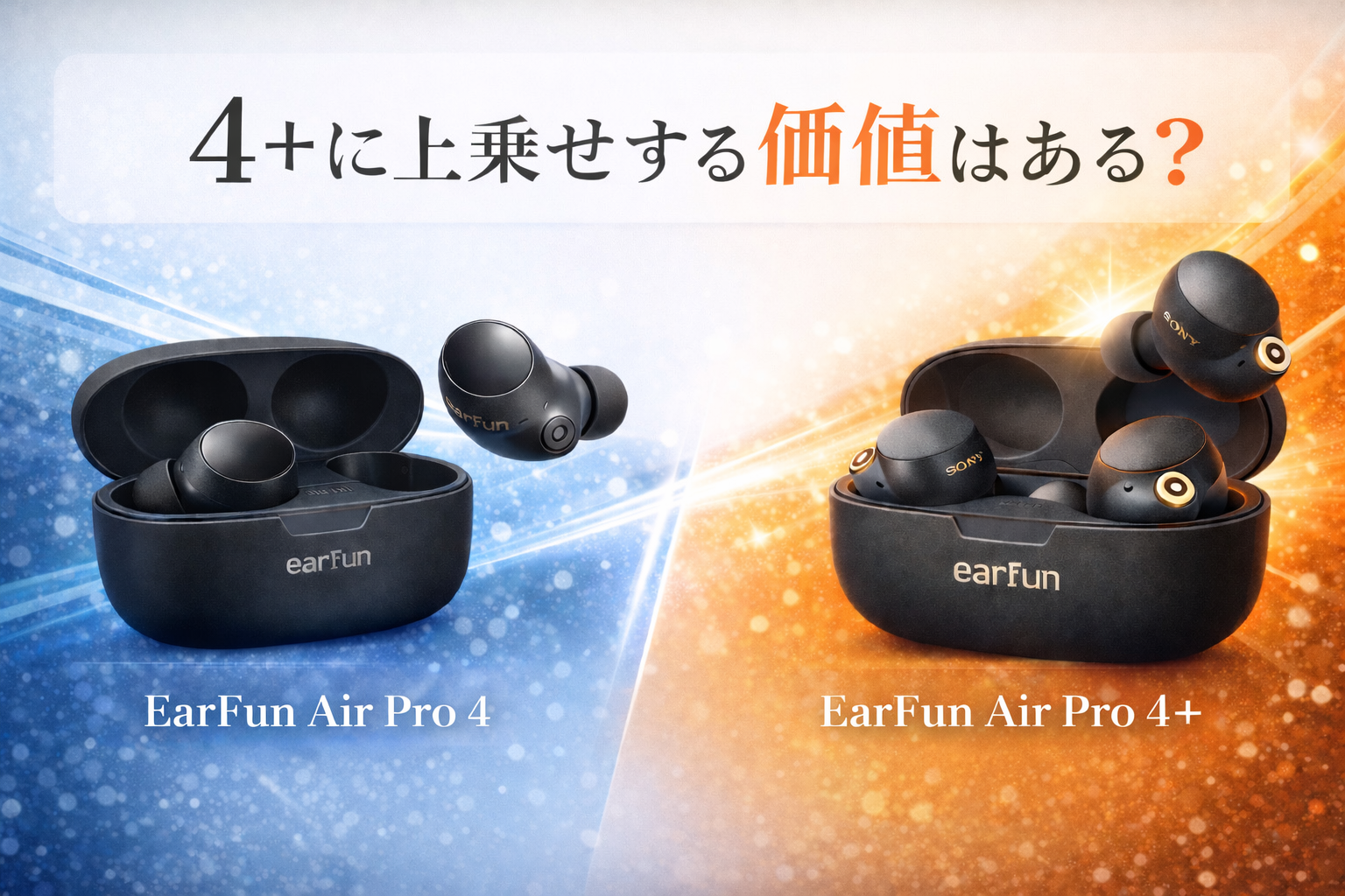 EarFun Air Pro 4とAir Pro 4+は、単なる名前違いではなく、コスパ重視の4と上位満足度を狙う4+という違いがあります。