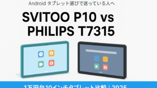 未分類 【2025年版】SVITOO P10 vs PHILIPS T7315|1万円台Androidタブレット徹底比較 【2025年版】1万円台タブレット比較|SVITOO P10 vs PHILIPS T7315 徹底レビュー「子どもの動画視聴用にタブレットが欲しい」「安くてサクサク動く勉強用タブレットが欲しい」 そんなときに候補にあがりやすいのが、SVI... 2025.12.06 未分類