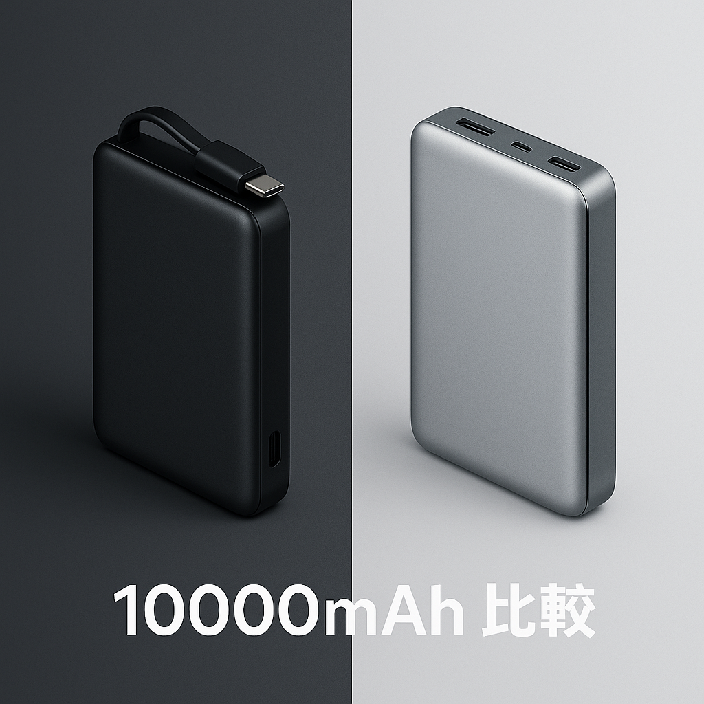 両者とも10000mAhの標準容量ですが、体験はまったく違います。 “速さと便利さ”か、“安定性と安心感”か。